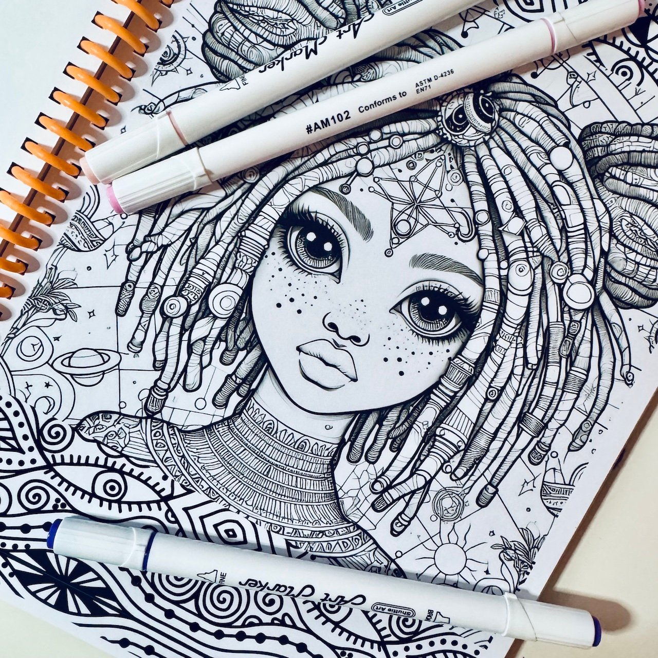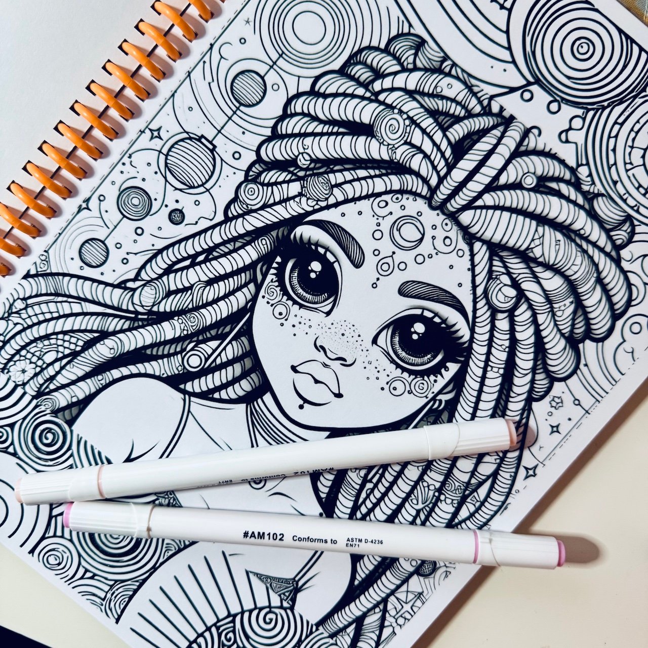More than a coloring book, it’s an artistic journey. 24 pages printed on heavy weight paper, with a vibrant cover. Everything handmade with love. Whether you’re coloring for relaxation, inspiration, or self-expression, every illustration invites you to dream boldly and color without boundaries.